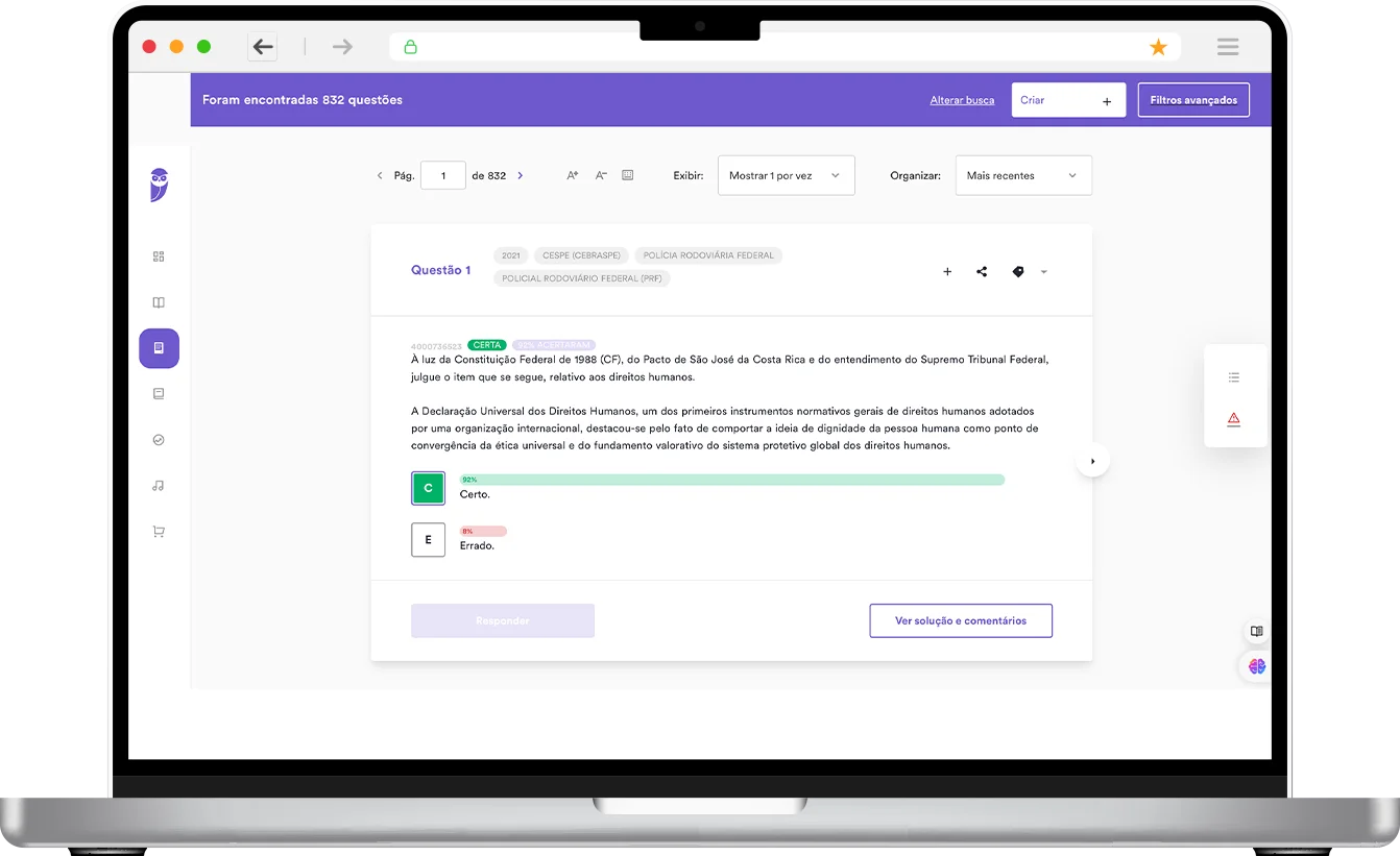 Desenvolvido, inicialmente, para que nossos alunos pudessem estudar conciliando teoria, exercício e revisão. Com o passar dos anos, ele se tornou o material on-line mais completo do mercado.